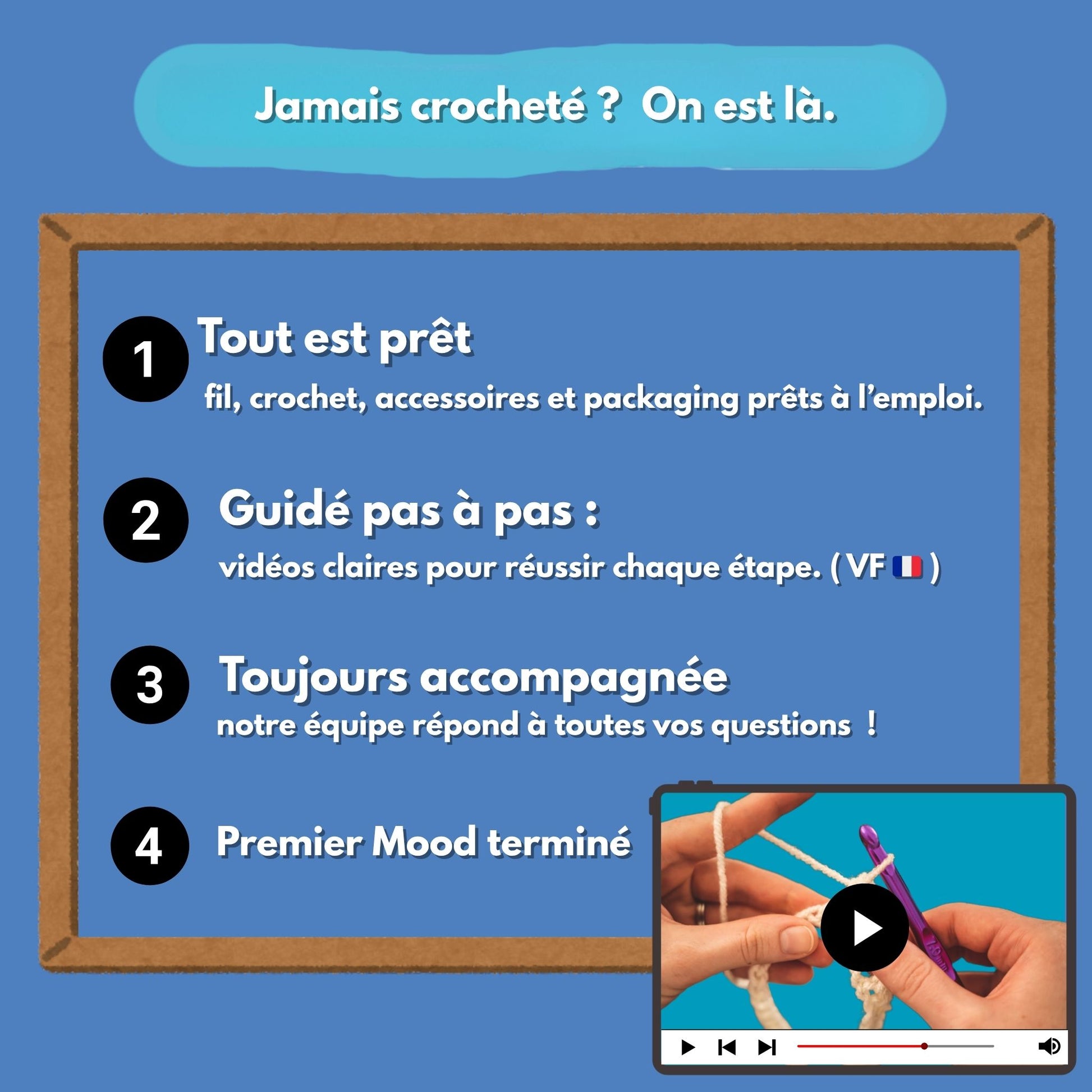 Oui, ce kit est fait pour vous, même si vous débutez totalement. On sait que le crochet peut sembler intimidant au départ, c’est pour ça que nous avons créé un accompagnement complet et progressif : des vidéos pas à pas, un matériel ergonomique et une approche pensée pour éviter que vous soyez bloqué·e ou découragé·e.