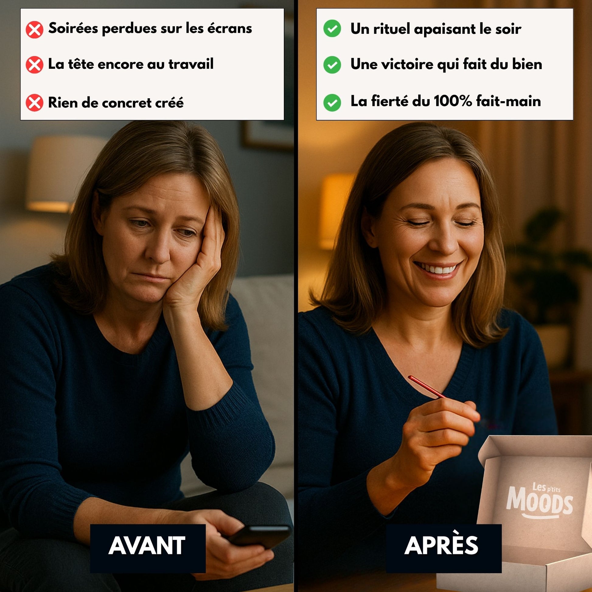 L’idée, c’est de vous faire vivre une expérience agréable où chaque étape devient un plaisir, pas un casse-tête. Beaucoup de nos client·es étaient surpris·es de voir à quel point ils pouvaient réussir, même sans “don naturel” pour les travaux manuels.